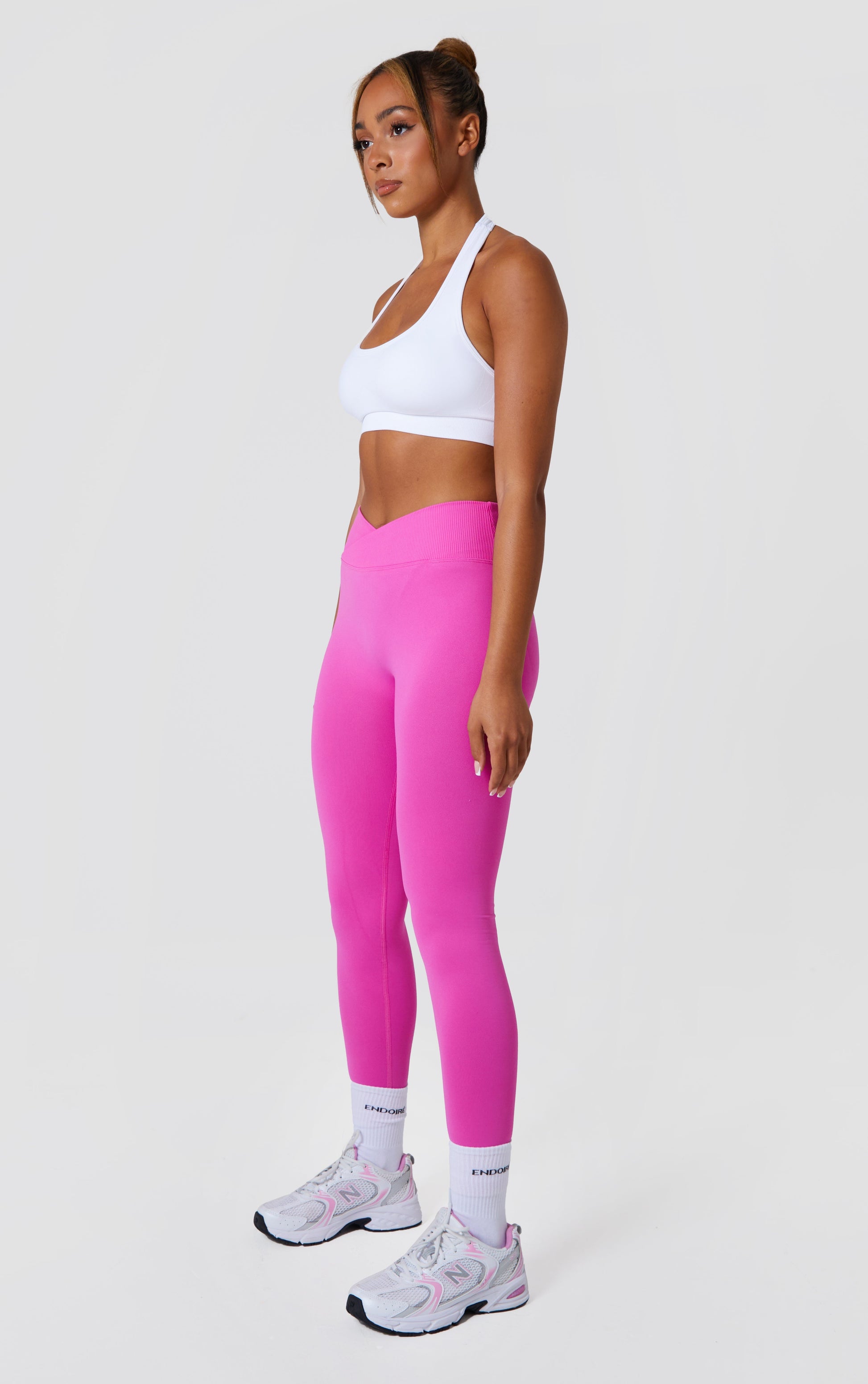 Statement Cross Waist Band Scrunch Leggings - Pink